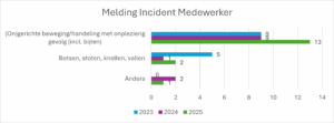 Verder zien we dat het aantal bijtincidenten onder medewerkers, dat in 2023 toenam, ook in 2024 en 2025 hoog bleef. Teams worden steeds gewezen op beschermende maatregelen, maar deze blijken niet altijd praktisch toepasbaar.
