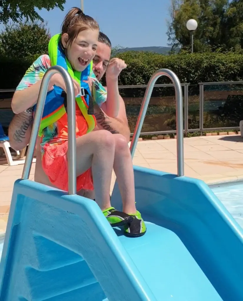 Wij zijn ouders gelijk aan alle ouders met 1 verschil en dat is dat ons leven en alles wat daarbij hoort voor een groot deel om Nena draait. Nena is nu bijna 15 jaar, maar heeft het verstandelijk vermogen van een kind van 14 maanden. In 2015 zijn we beiden volledig voor haar gaan zorgen, daar we geen vooruitgang zagen in haar ontwikkeling. Nena was veel ziek, had een canule en er waren veel ziekenhuisopnames. Van 2 fulltime werkende ouders in de bouw en in de cultuursector, zijn we in het diepe gesprongen. Hoe moeilijk het soms ook is, kunnen we zeggen dat het onze beste beslissing is geweest. We stelden ons steeds dezelfde vraag: Wat als er een dag komt waarop Nena om wat voor reden dan ook niet meer thuis zou kunnen wonen? Welke zaken moet je hebben geregeld en nog belangrijker, wat kunnen we haar vanuit ons gezin meegeven, waarmee ze een stukje zelfredzaamheid ontwikkeld? Hoe om te gaan met structuur, emoties? Wij zijn enorm betrokken bij alle verzorgenden om haar heen. We zijn dan ook de coördinerende partij. We voeren alle beslissingen door, zowel in goed overleg met Omega als met onze zorgmedewerkers. Het allerbelangrijkste is onze dochter een zo fijn mogelijk leven geven, zichzelf kunnen laten zijn en er zoveel mogelijk uithalen wat erin zit. Haar voor te bereiden op een toekomst wanneer papa en mama misschien niet meer in staat zijn om voor haar te zorgen, maar haar wel hebben geleerd om te kunnen communiceren. Wij hebben de afgelopen 11 jaar dan ook zoveel mogelijk geprobeerd om Nena op te voeden, zoals je met een gezond kind ook zou doen. Op vakantie, mee uit eten, naar de kermis, op visite. Toen Nena kleiner was, nog met een tracheacanule, was de medische zorg erg zwaar, waar we nu in de puberteit veel meer aandacht moeten besteden aan haar mentale welzijn. Dit heeft ook te maken met haar syndroom. Nena kan erg obsessief gedrag vertonen en zich automutileren.